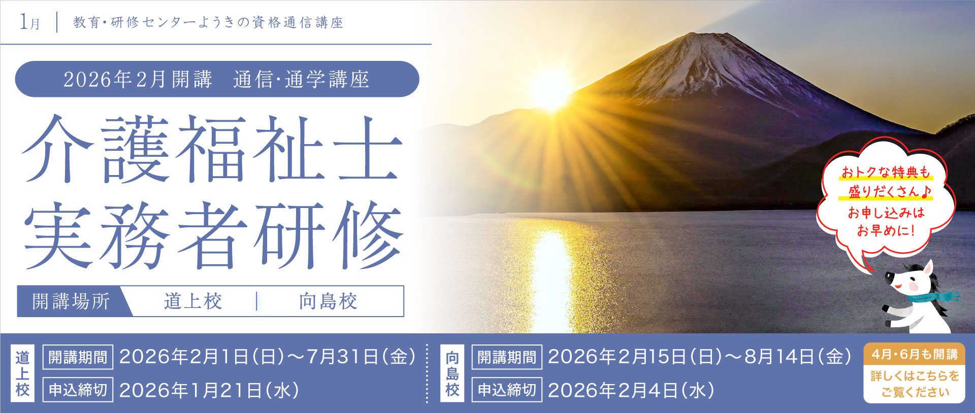 6ヶ月の訓練で介護福祉士実務者研修の資格を取得し、就職に役立てます。(広島県委託事業)
