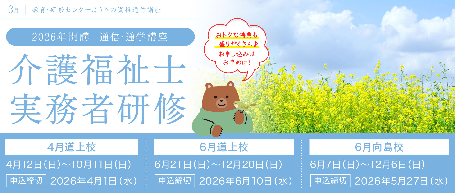 3ヶ月の訓練で初任者研修の資格を取得し、就職に役立てます。(広島県委託事業)