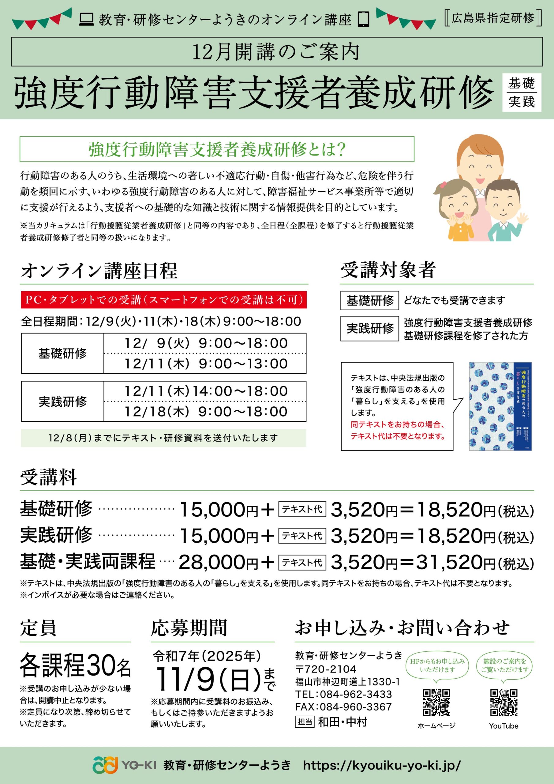強度行動障害支援者養成研修(基礎・実践) 12月開講  オンライン講座(pdf)